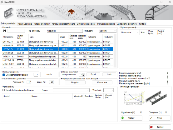 Oprogramowanie w formie nakładki na popularne środowiska CAD pozwalające na projektowanie tras kablowych i generowanie zestawień materiałowych w oparciu o produkty BAKS.