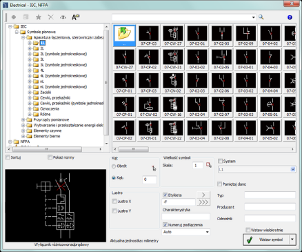 Biblioteka IEC, NFPA zawiera symbole zgodne z normami EN 60617 oraz NFPA 79.