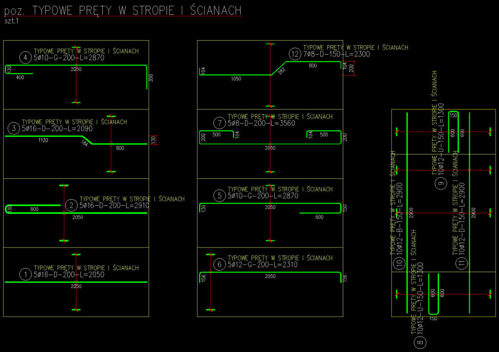 Zestawienie graficzne stali dynamicznego zbrojenia do rysunku DWG [E-ZSGPK]