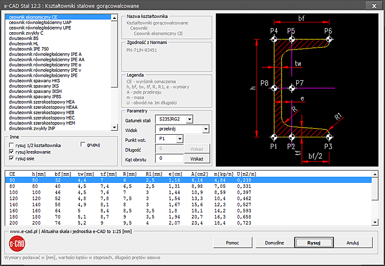 - Rysowanie kształtowników stalowych gorącowalcowanych [E-KG]