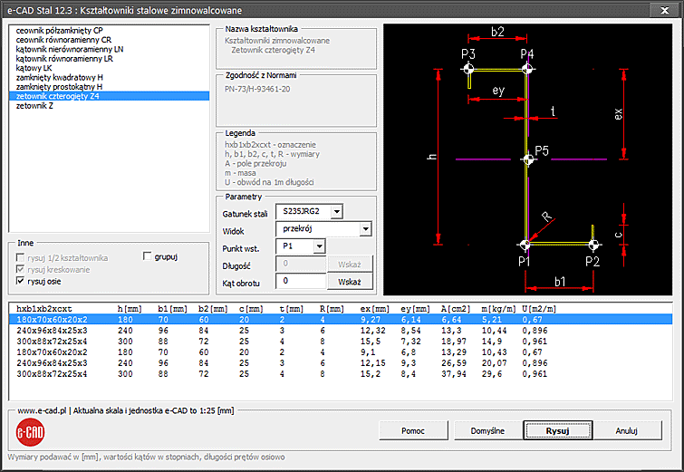 - Rysowanie kształtowników stalowych zimnowalcowanych [E-KZ]