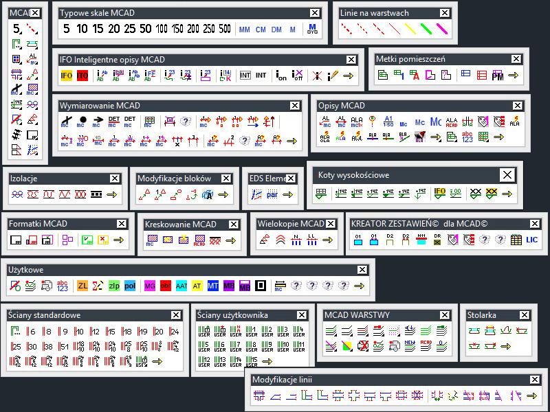 - Zintegrowane biblioteki typowych prostych bloków rysunkowych wykorzystywanych w budownictwie