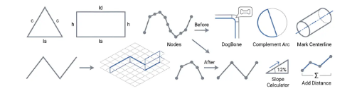 Doskonal geometrię za pomocą dedykowanych narzędzi do konwersji 2D–3D i optymalizacji węzłów. Wykorzystaj wstawianie wierzchołków, best-fit polilinie i interpolację. Moduł zapewnia precyzyjne funkcje analizy odległości i spadków.