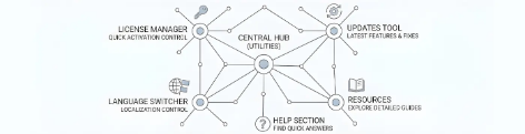 Zarządzaj środowiskiem z centralnego huba – licencje i ustawienia językowe.