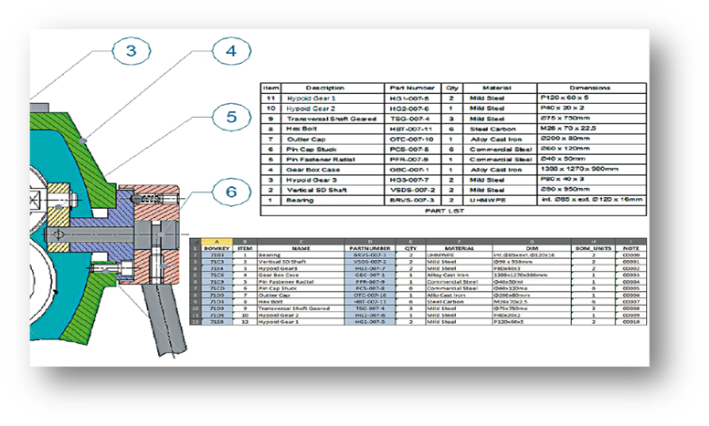 GstarCAD Mechanical obsługuje eksport/import BOM-ów i list części w różnych formatach plików: