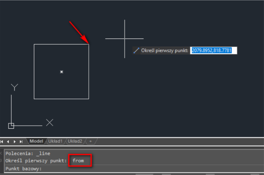 gdzie klikamy właśnie prawy, górny narożnik kwadratu skąd chcemy, aby program odliczył