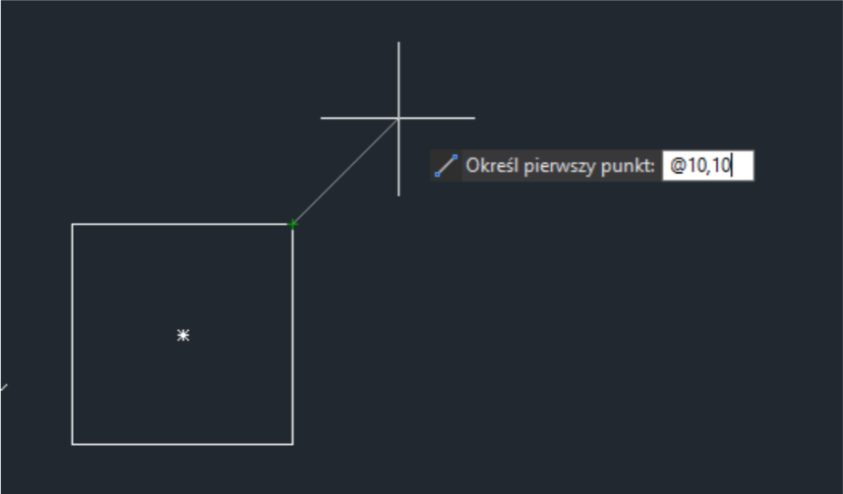 GstarCAD zaczyna rysować linię z punktu x = 10, y = 10 jednostek od wskazanego miejsca