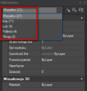 W oknie „Właściwości” (Ctrl + 1) odczytasz ilości i rodzaj wybranych przez siebie obiektów.