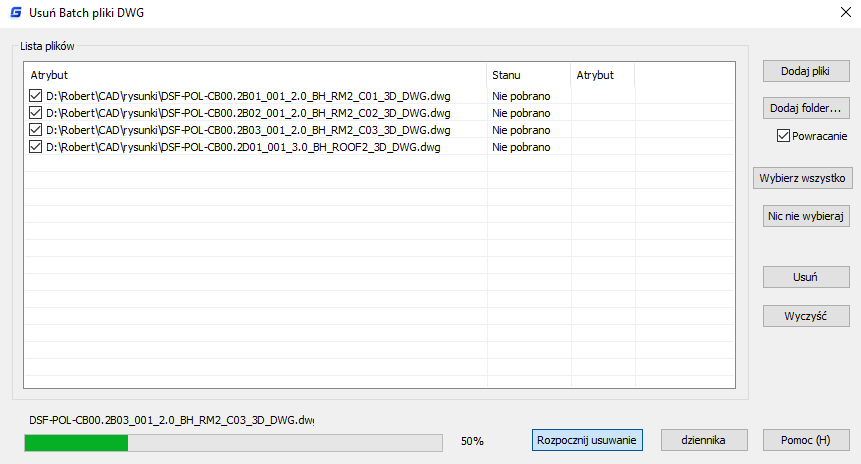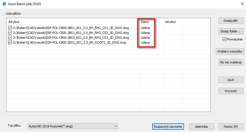 w GstarCAD możesz „hurtowo” użyć komendy PURGE do wielu plików jednocześnie dodatkowo bez