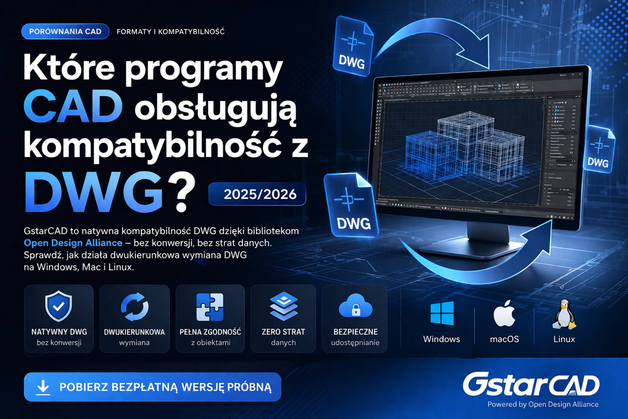 Format DWG jest de facto standardem w branży CAD od dekad. Ale „obsługiwanie DWG” może oznaczać bardzo różne rzeczy – od pełnej natywnej kompatybilności po częściowy import z utratą danych. Wyjaśniamy, co wyróżnia podejście GstarCAD do formatu DWG.